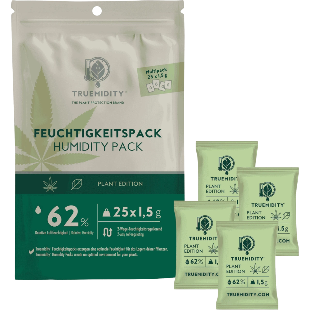 Das clevere Prinzip wirkt wie ein atmender Feuchtigkeitsspeicher und verhindert effektiv Schimmel, Pilzbildung und Geschmacksverlust – ganz ohne Gele, Flüssigkeiten oder künstliche Duftstoffe. Die luftdurchlässige Membran ermöglicht eine gleichmäßige Feuchtigkeitsabgabe und schützt deine wertvollen Kräuter vor Austrocknung oder Überfeuchtung. Dank der konstanten Luftfeuchtigkeit von wahlweise 58 % oder 62 % RH bleiben Aroma, Wirkung, Geruch und Qualität deiner Pflanzen optimal erhalten.