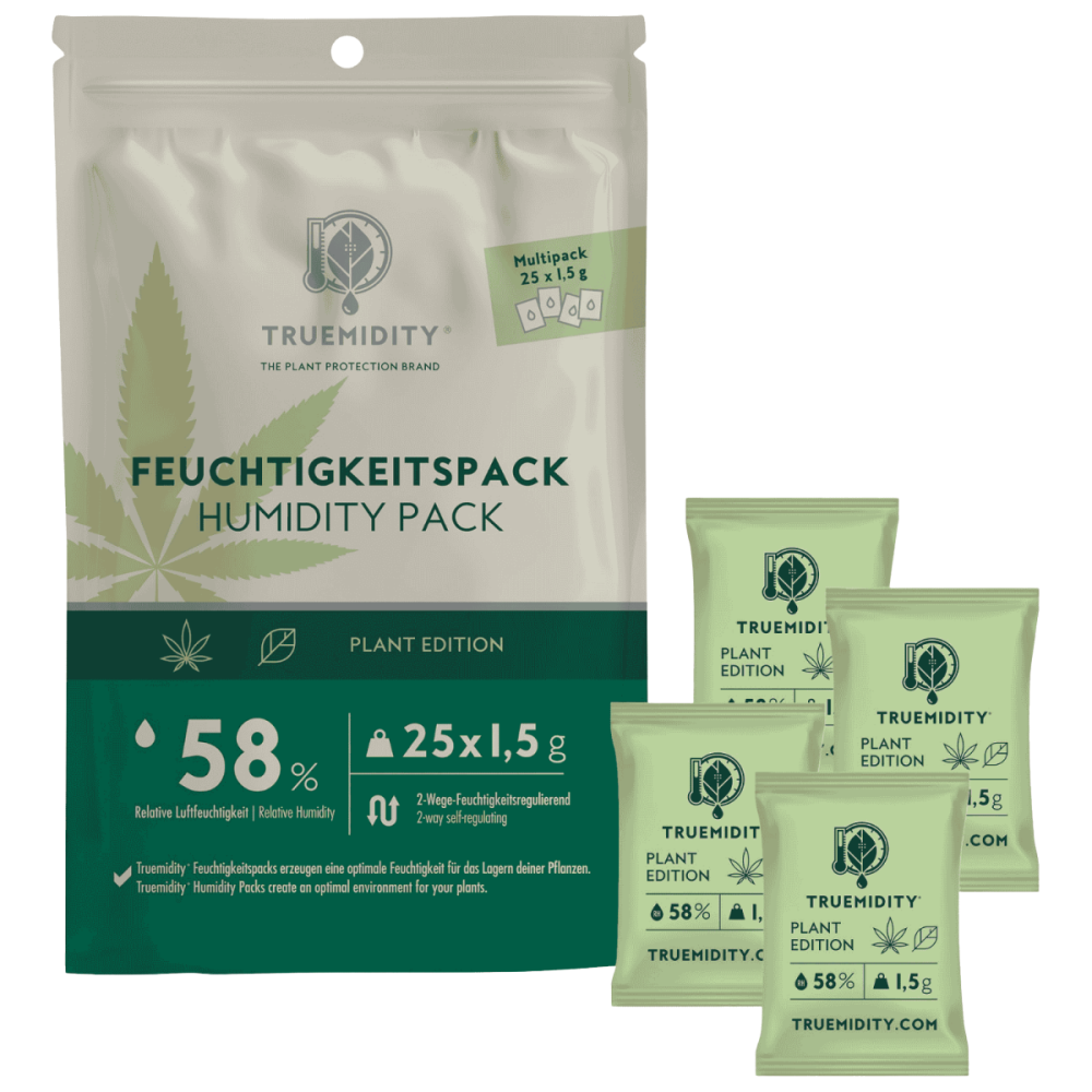 Das clevere Prinzip wirkt wie ein atmender Feuchtigkeitsspeicher und verhindert effektiv Schimmel, Pilzbildung und Geschmacksverlust – ganz ohne Gele, Flüssigkeiten oder künstliche Duftstoffe. Die luftdurchlässige Membran ermöglicht eine gleichmäßige Feuchtigkeitsabgabe und schützt deine wertvollen Kräuter vor Austrocknung oder Überfeuchtung. Dank der konstanten Luftfeuchtigkeit von wahlweise 58 % oder 62 % RH bleiben Aroma, Wirkung, Geruch und Qualität deiner Pflanzen optimal erhalten.