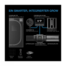 Der Controller 69 PRO ist das Herzstück dieses Grow-Systems und ermöglicht eine individuelle Steuerung aller Komponenten. Lüfter, Licht und Klimakontrolle lassen sich dynamisch anpassen – basierend auf Dampfdruckdefizit (VPD), Temperatur und Luftfeuchtigkeit.