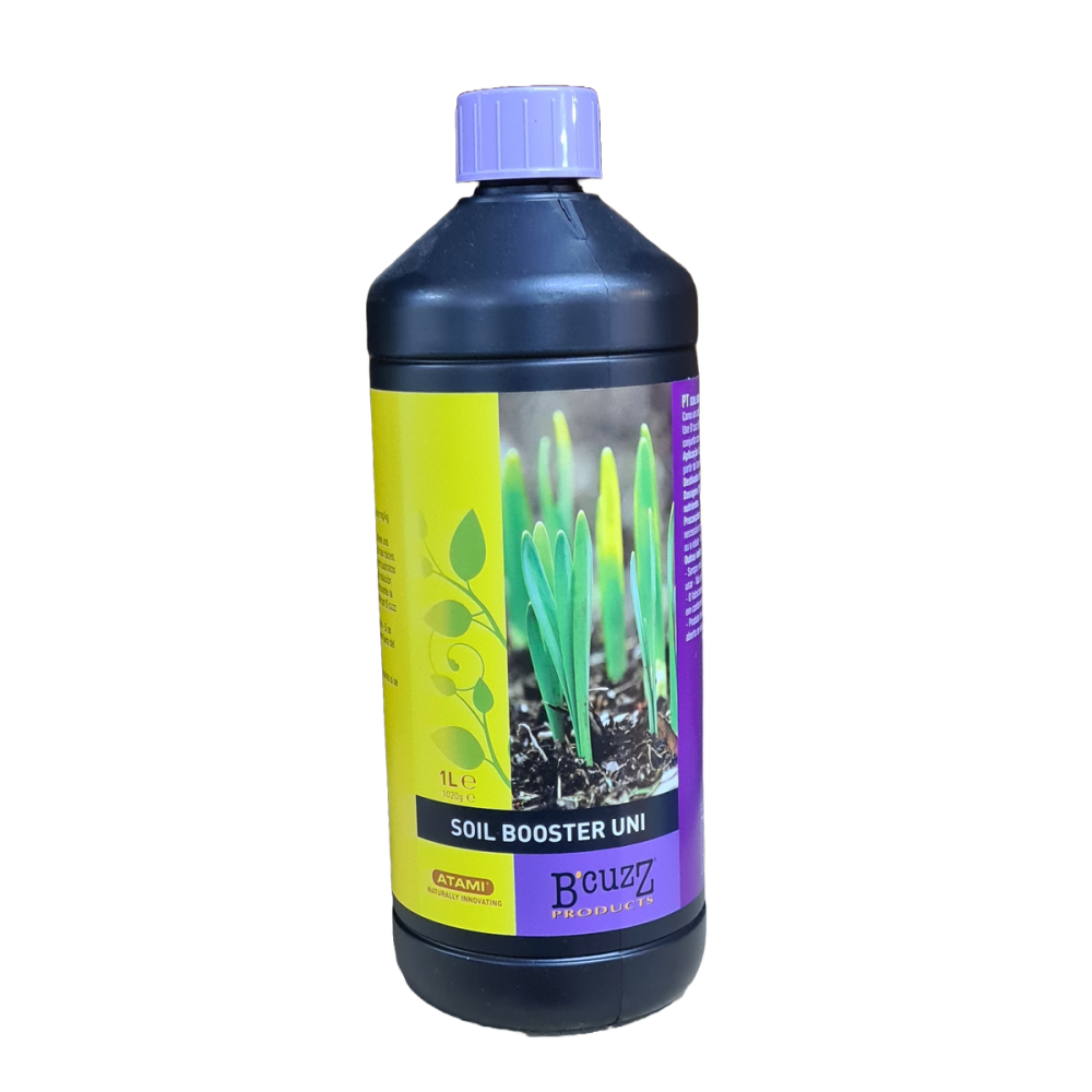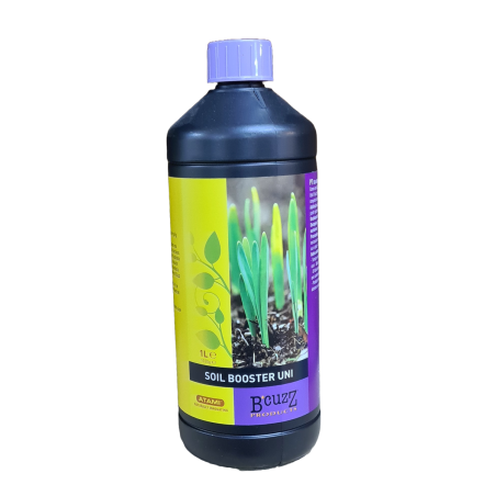 Booster für Pflanzen auf Erde. Enthält Bakterien, Wurzelstimulatoren, Pflanzenextrakte, Enzyme, Zitronensäure und Pflanzenstärkungsmittel