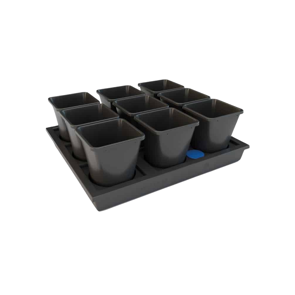 Auto 9 XL ermöglicht die Bewässerung von neun soliden XL-Töpfen mit einem Fassungsvermögen von 25 Litern in einer einzigen Wannen- und Deckelbaugruppe von etwas mehr als einem Quadratmeter.