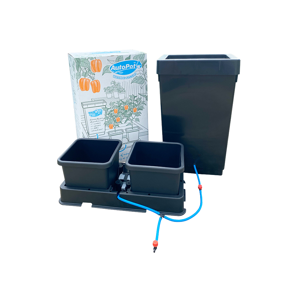 Das phänomenal platzsparende Zwei-Topf-Modul von easy2grow hilft den Gärtnern schon seit Jahren, das absolute Maximum aus ihren verfügbaren Flächen herauszuholen. Wie alle AutoPot Bewässerungssysteme kann easy2grow praktisch überall aufgestellt werden, da es weder Strom noch fließendes Wasser benötigt. Es lässt sich leicht erweitern, so dass viele Töpfe an ein einziges Reservoir angeschlossen werden können. Die Töpfe und Schalen können nach Belieben verschoben werden, und wenn die Pflanzen zu groß werden, können sie mit Leichtigkeit weiter auseinander gestellt werden.