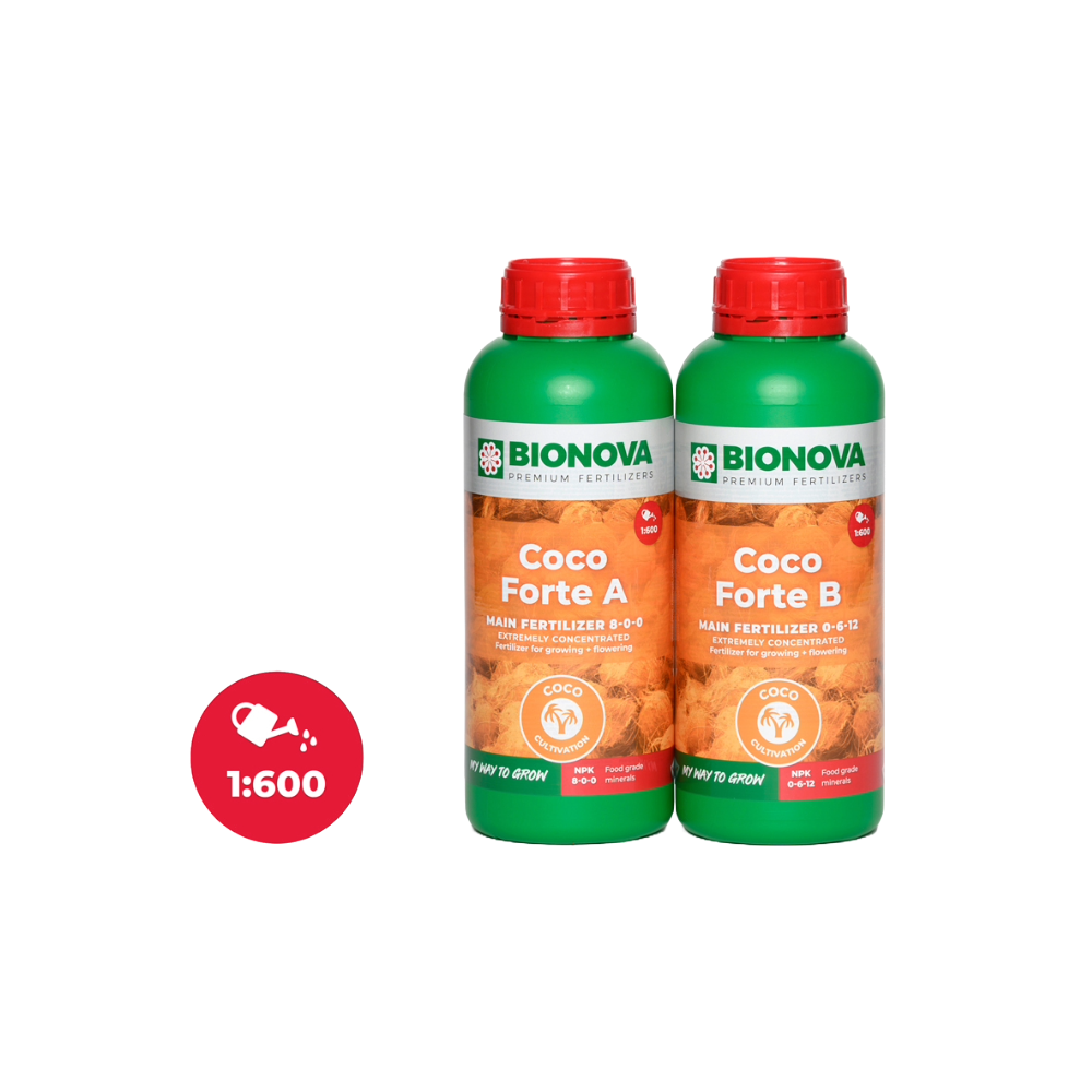 Bionova Coco Forte A+B ist von der ersten Wachstumswoche bis eine Woche vor der Ernte verwendbar. Spülen ist obligatorisch.
