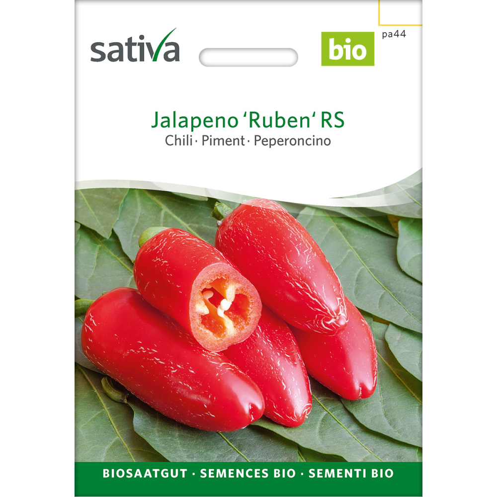 Die Jalapeño Ruben RS zählt zu den beliebtesten Chilisorten weltweit. Ihre ca. 7 cm langen, dickwandigen und saftigen Früchte bieten eine kräftige, aber angenehme Schärfe. Typischerweise werden die grünen Schoten geerntet, da sie in diesem Zustand ihr volles Aroma entfalten. Während der Reifung verfärben sich die Früchte leuchtend rot und entwickeln eine leicht süßliche Note. Diese Sorte ist vielseitig verwendbar – ob frisch, eingelegt oder geräuchert als Chipotle.