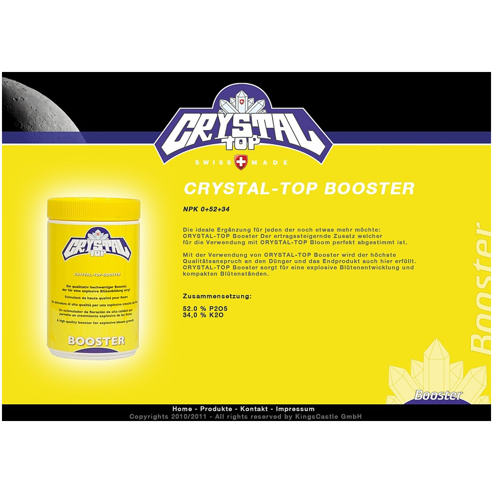 Swiss power plant food. Crystal Top hat sich als 100% wasserlösliches Nährsalz im Gartenbau bewährt. Durch ständige Weiterentwicklung und Verbesserung ist jetzt ein Dünger entstanden, der ein optimales Wachstum und höchste Qualität Ihrer Produkte sichert