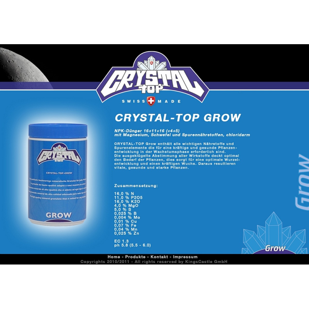 Swiss power plant food. Crystal Top hat sich als 100% wasserlösliches Nährsalz im Gartenbau bewährt. Durch ständige Weiterentwicklung und Verbesserung ist jetzt ein Dünger entstanden, der ein optimales Wachstum und höchste Qualität Ihrer Produkte sichert