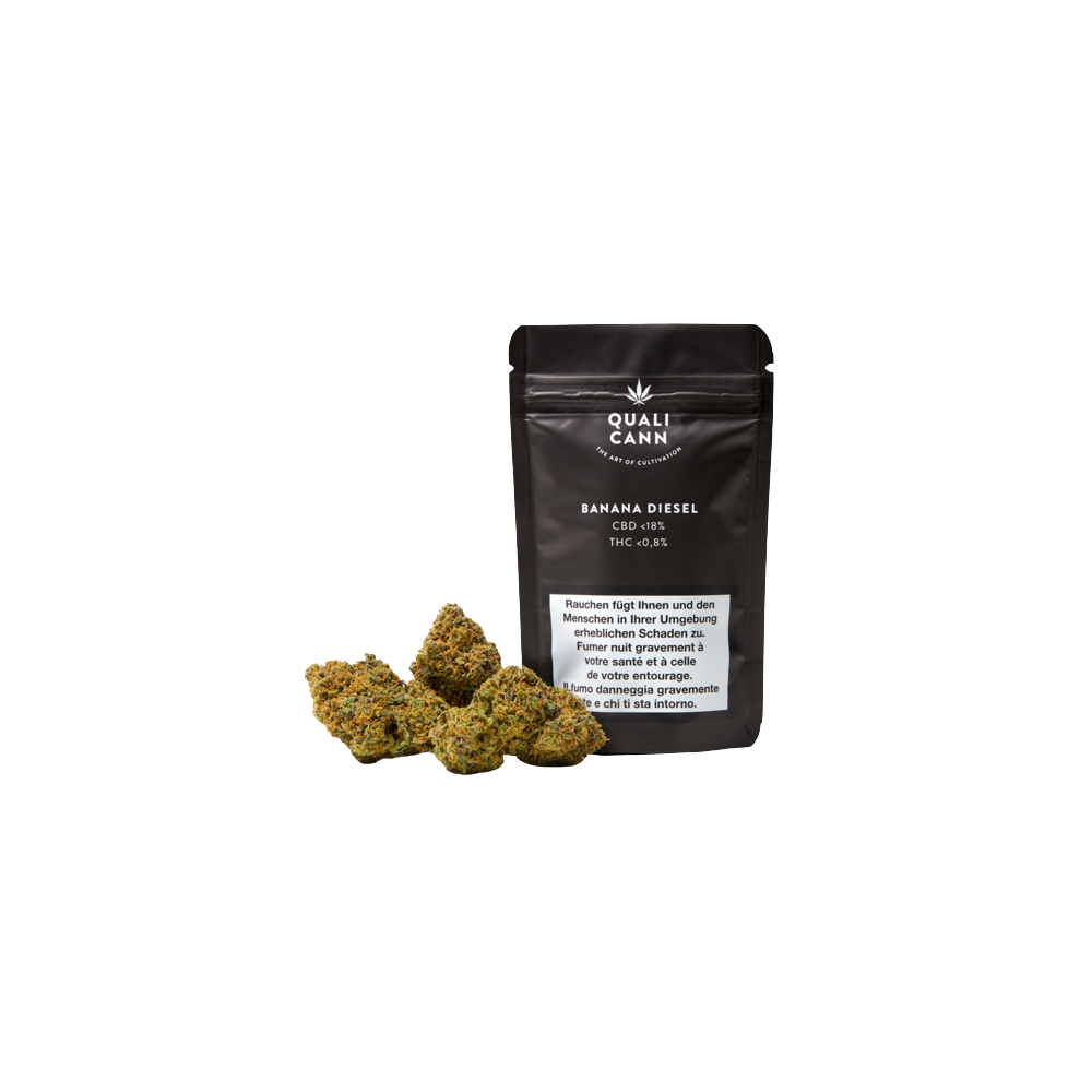 Das Banana Diesel besticht neben dem hohen Cannabinoid-Gehalt vor allem durch seinen unvergleichlichen Duft. Intensiv süsslich nach braunen Bananen und Diesel. Klingt speziell, ist es auch!