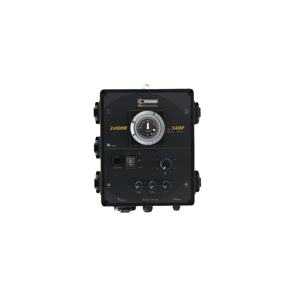 Der Mini-Controller HUMI, MH-Serie, ist für das Schalten von Lampen und Heizung gedacht und steuert die Geschwindigkeit und Versorgung der Ventilatoren entsprechend der Temperatur. Dieser Prototyp kommt auch mit einer Feuchtigkeitskontrolle, mit zwei Modi: Befeuchter und Luftentfeuchter. Er enthält einen doppelten Sensor für Temperatur und Feuchtigkeit.
