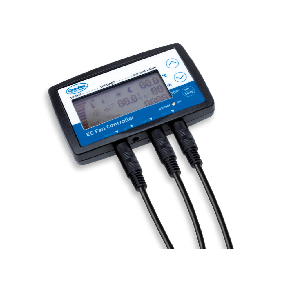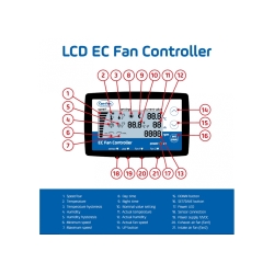 Auf dem LC-Display kann mit einem Blick auf das aktuelle Klima geschlossen werden: Temperatur, Luftfeuchtigkeit und die Drehzahl des Ventilators sind sofort zu sehen. Diese Werte können für Tag und Nacht getrennt geregelt werden. Es kann eine Minimaldrehzahl vorgegeben werden, unter die der Ventilator niemals gehen wird, so wird ein Unterdruck im Zelt / Raum sichergestellt, sowie eine Maximaldrehzahl, die er niemals überschreiten wird. Letzteres kann Sinn machen, um die Lautstärke des Lüftungssystems so gering wie möglich zu halten.