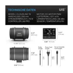 Ein intelligenter Inline-Ventilator, der für die leise Belüftung von Hydrokulturräumen, die Beheizung/Kühlung von Räumen, die Umwälzung von Frischluft, die Absaugung und die Kühlung von AV-Schränken entwickelt wurde. Mit seinem Inline-Mischstromdesign kann der Kanalventilator den Luftstrom auch bei hohem statischen Druck aufrechterhalten. Er ist mit einem PWM-gesteuerten EC-Motor ausgestattet, der leise und energieeffizient arbeitet. Das Motorgehäuse, in dem sich das Laufrad und die Schaufeln des Ventilators befinden, kann zur einfachen Reinigung und Wartung vom Montagerahmen abgenommen werden. Enthält einen intelligenten Controller mit dynamischer Klima- und Zeitprogrammierung und kann mit mehreren UIS-Geräten verbunden werden. Dieses Produkt ist Teil der UIS™-Plattform von Anbaugeräten und Smart Controllern, die so konzipiert sind, dass sie miteinander verbunden werden können, um deine ideale Umgebung zu schaffen.