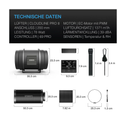 • Leiser und effizienter CLOUDLINE PRO Inline-Ventilator mit PWM-gesteuertem EC-Motor