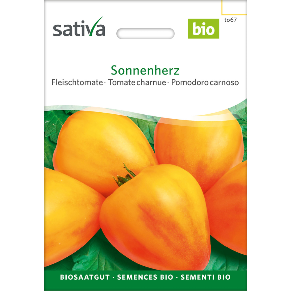 Die Sonnenherz Fleischtomate (Solanum lycopersicum) ist eine frühe Ochsenherztomate mit einem außergewöhnlich fruchtigen und aromatischen Geschmack. Sie zeichnet sich durch viel Fruchtfleisch und wenig Gallertmasse aus, was sie zu einer idealen Tomate für frische Salate, Saucen oder zum Einkochen macht. Ihre gelborange Früchte reifen in mehreren Kammern und sind besonders geschmackvoll und saftig. Der lichte Pflanzenaufbau macht sie einfach zu pflegen und zu ernten.