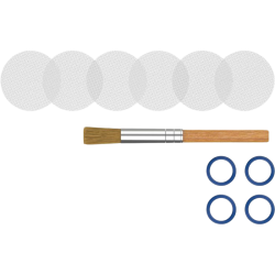 - 1 pc. Filling Chamber (including: 1 pc. Cap Ring, 1 pc. Normal Screen Set (approx. Ø 30 mm), 1 pc. Drip Pad (approx. Ø 28 x 4 mm), 1 pc. Cleaning Brush)
