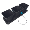 Auto3 XL allows you to irrigate three 25 litre solid XL pots in single tray and lid assembly that measures just 114.5cm x 38.5cm. All fed by a single AQUAvalve5.