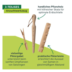 With the Greenline propagation tool set made of wood, you have everything you need to professionally and sustainably grow your flowers, vegetables and herbs. The three-piece set is made of FSC-certified beechwood, offering you long-lasting quality and a good feeling while gardening.
