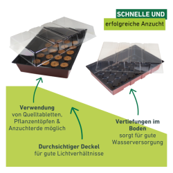 Thanks to its compact dimensions, the greenhouse fits perfectly on any windowsill and offers space for approx. 24 seedling