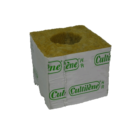 Cultivating block made of rock wool. The smallcube fits into the aperture.