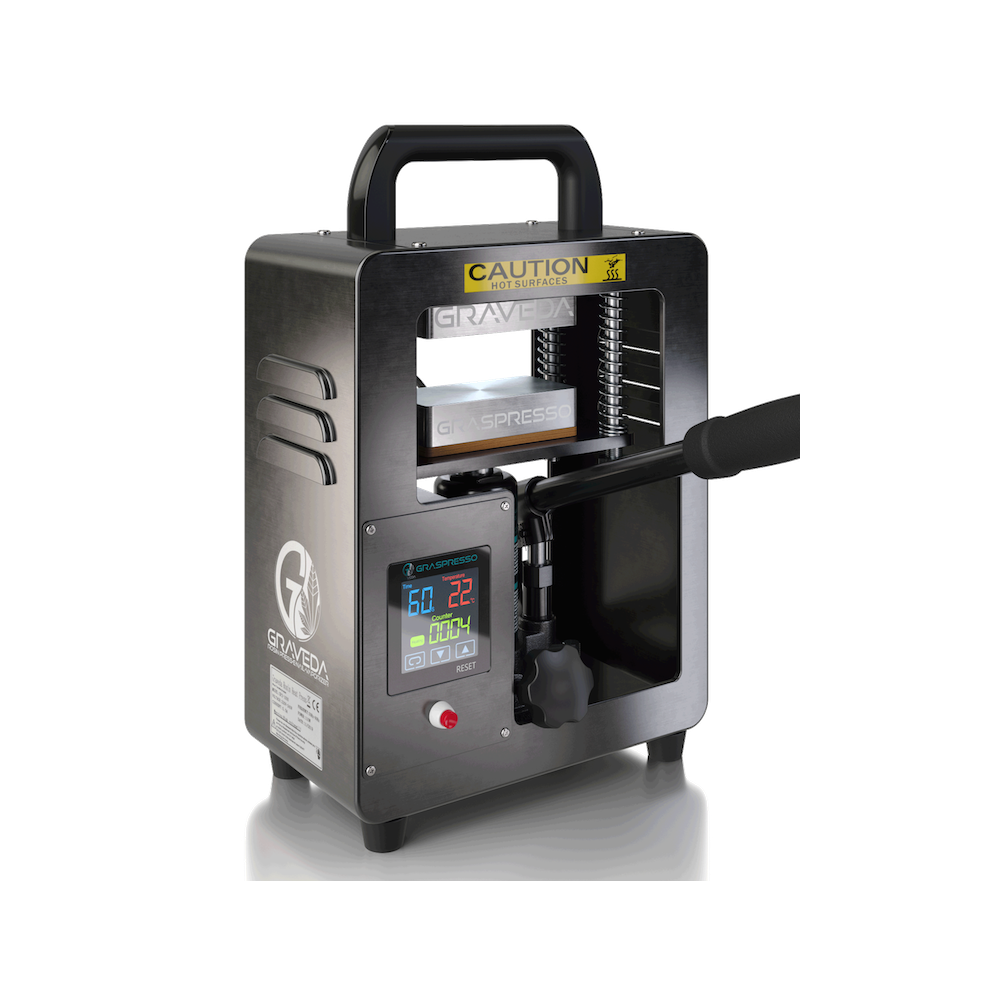 Discover the versatility of the Graveda Graspresso GP30-5, a real all-rounder among the Rosin presses. Equipped with a 5 tonne hydraulic cylinder and 12 cm x 6 cm plates, it offers everything you need for professional extractions at home - and at the usual Graveda price.