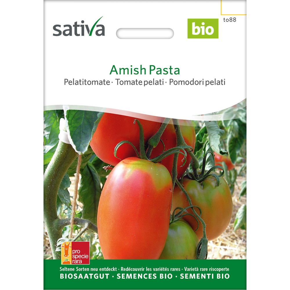 Amish Pasta is a late-ripening, tall tomato variety with large, elongated fruits. This red tomato has an excellent flavour, both raw and in sauces. The plant bears abundant fruit and is a valuable addition to any garden. This variety has been recognised by ProSpecieRara as an old and rare variety and contributes to the preservation of traditional tomato species.