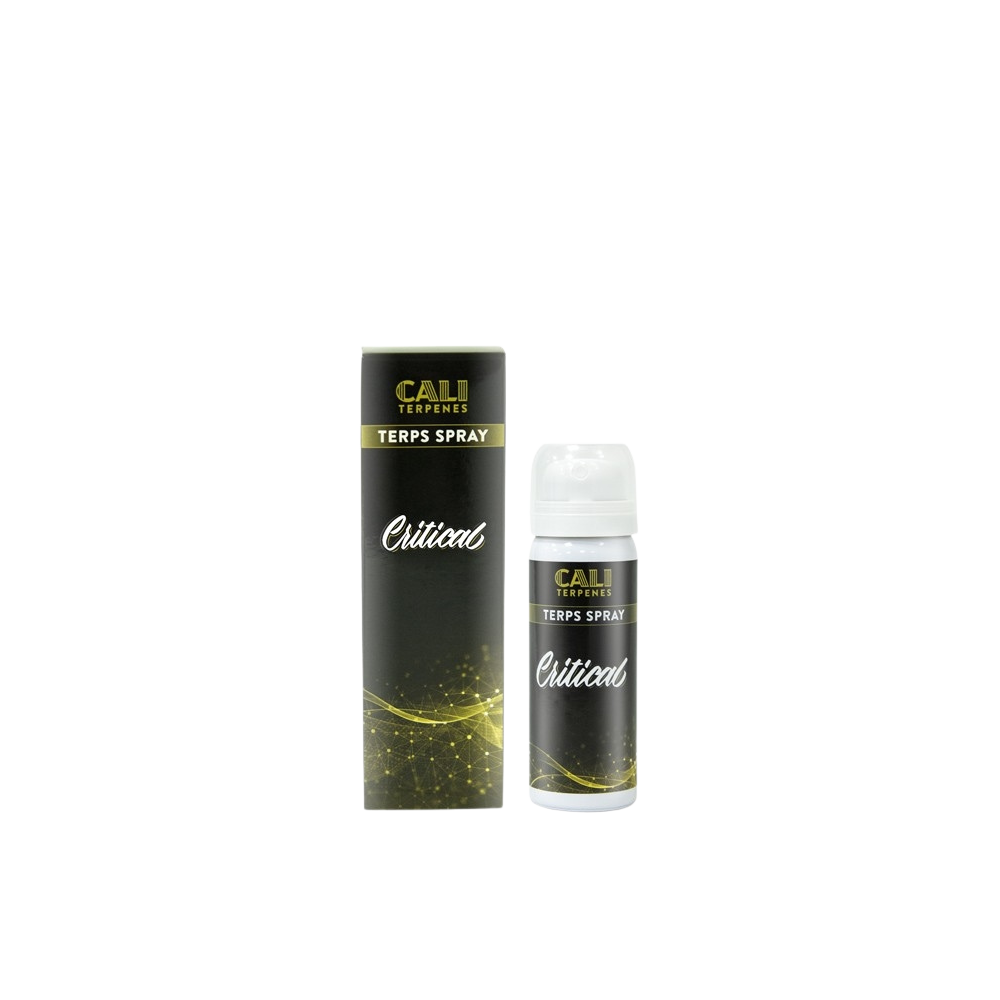 Le Critical Terps Spray est un système révolutionnaire permettant dajouter des terpènes de Cali Terpenes (arômes de cannabis) de manière pratique à toutes sortes de produits alimentaires, fleurs, extraits