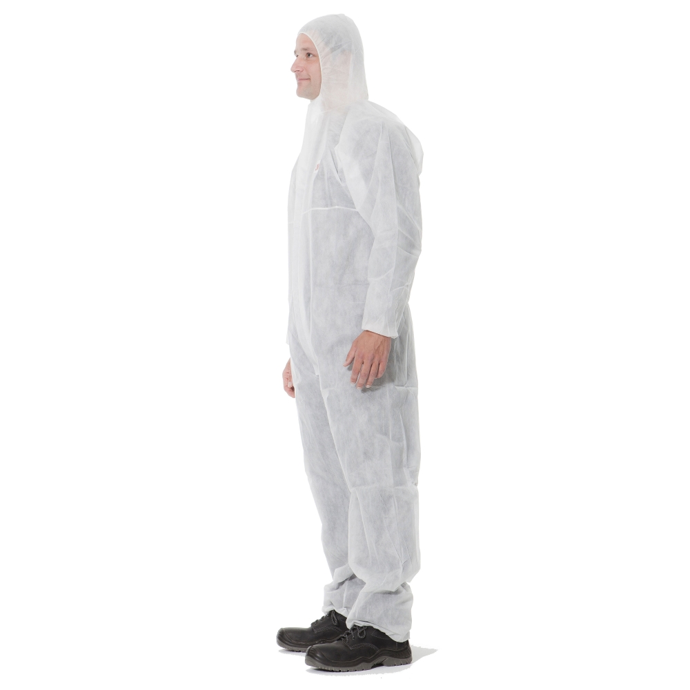 Protection au travail COVERALL-PRO-CAT3-TYPE 5/6 La protection efficace contre les produits chimiques, la saleté et lhumidité - Protège lors du travail avec des peintures et des vernis, de la protection du dessous de caisse, des lubrifiants, des mousses de polyuréthane, des produits chimiques, des acides doux et de la marche ainsi quen cas de poussière, de vapeur, de suie et dhumidité - Absolument sans peluches ; donc idéal dans le domaine de la peinture. - Résistant à la déchirure et à labrasion, même lorsquil est mouillé. - Légèreté et confort, liberté de mouvement totale. - Pas immédiatement inflammable. - Lavable. - Type classe 5+6. conception Avec capuche, fermeture à glissière et élastique aux ouvertures de la capuche et des manches, au dos et à la capuche.