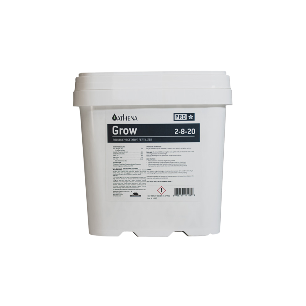 La phase de croissance végétative nécessite une alimentation équilibrée pour former des racines solides et un feuillage luxuriant. Athena Pro Grow est un mélange dengrais soluble équilibré, formulé pour les cultivateurs commerciaux afin doptimiser lirrigation. Utilisez-le avec Athena Pro Core pour une recette complète et équilibrée.