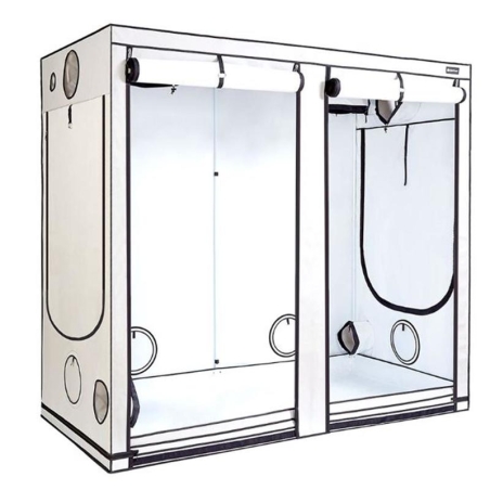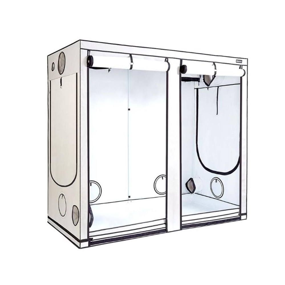 Les cultivateurs qui en veulent plus trouveront deux orifices de 300 mm dans le toit, des tubes parallèles de 250 mm à droite et à gauche et quatre évents dair OmniFlow ! Le bac de culture Ambient R240 peut contenir deux ou même trois lampes de 600 W, et grâce à la tringlerie super solide de 22 mm, il est loin davoir atteint sa limite !