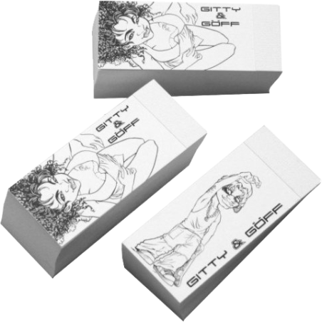 Gitty et Goeff filtre de blocage. Ce bloc filtrant comporte 150 feuilles. Les filtres ne sont pas imprimés. Dimensions: 5,5 x 2,5 cm, perforé