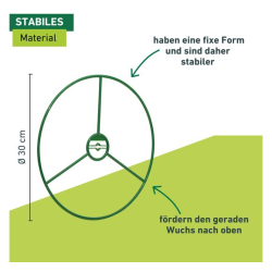 Que ce soit dans le jardin, sur le balcon ou dans la serre, les cercles de culture de 30 cm donnent à vos plantes la structure et la stabilité nécessaires pour pousser sainement et droit. Idéal en combinaison avec des tuteurs de plantes disponibles dans le commerce.
