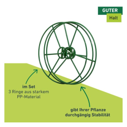 Les anneaux pour plantes de 40 cm de diamètre sont la solution idéale si vous souhaitez que vos plantes poussent droites et stables. La forme solide des anneaux assure une stabilité fiable, tandis que la facilité de manipulation rend leur utilisation particulièrement pratique.