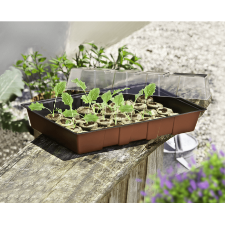 Grâce à ses dimensions compactes, la serre sadapte parfaitement à nimporte quel rebord de fenêtre et offre de la place pour environ 24 plants.