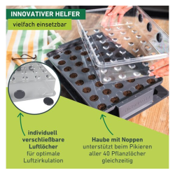 • Couvercle innovant – avec picots pour repiquer et ventilation réglable individuellement