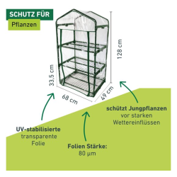 La serre de balcon offre des conditions optimales pour la culture et la croissance dherbes aromatiques, de légumes et de plantes ornementales, même dans les plus petits espaces. La construction compacte avec trois surfaces de rangement stables est idéale pour une utilisation sur un balcon, une terrasse ou dans un petit jardin urbain.