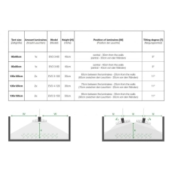 Bien que nos luminaires puissent sembler un peu plus hauts à première vue, dans la pratique, ils permettent de gagner pas mal de hauteur. Dans la plupart des salles de culture, les filtres et les systèmes de ventilation sont montés au plafond. Avec notre série EVO, léquipement nécessaire peut être placé entre les luminaires sans perdre un seul cm de hauteur utile. En raison de leur conception, les systèmes déclairage dautres fabricants doivent être montés sous le système de ventilation. Cela fait perdre beaucoup plus despace. Cela sapplique aussi bien aux petites tentes de culture quaux grandes installations professionnelles.