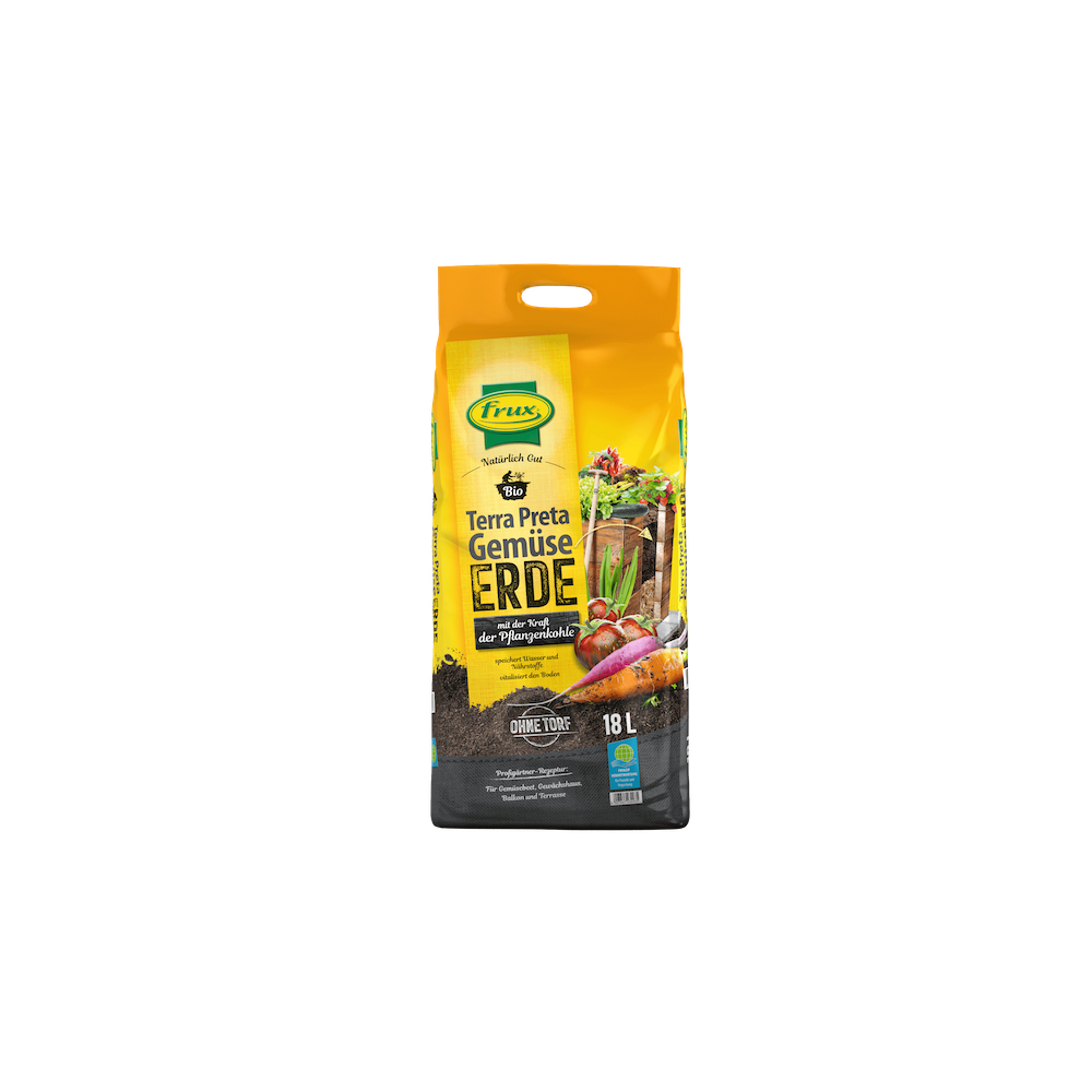 Le secret réside dans le charbon végétal que nous avons intégré dans notre Frux Terra Preta, un terreau potager bio sans tourbe. En raison de sa grande surface poreuse, le charbon végétal simprègne comme une éponge des nutriments et des organismes vivants du sol. Son carbone est une nourriture pour les micro-organismes. Ils décomposent la matière organique et la transforment en un sol riche en humus et en nutriments.